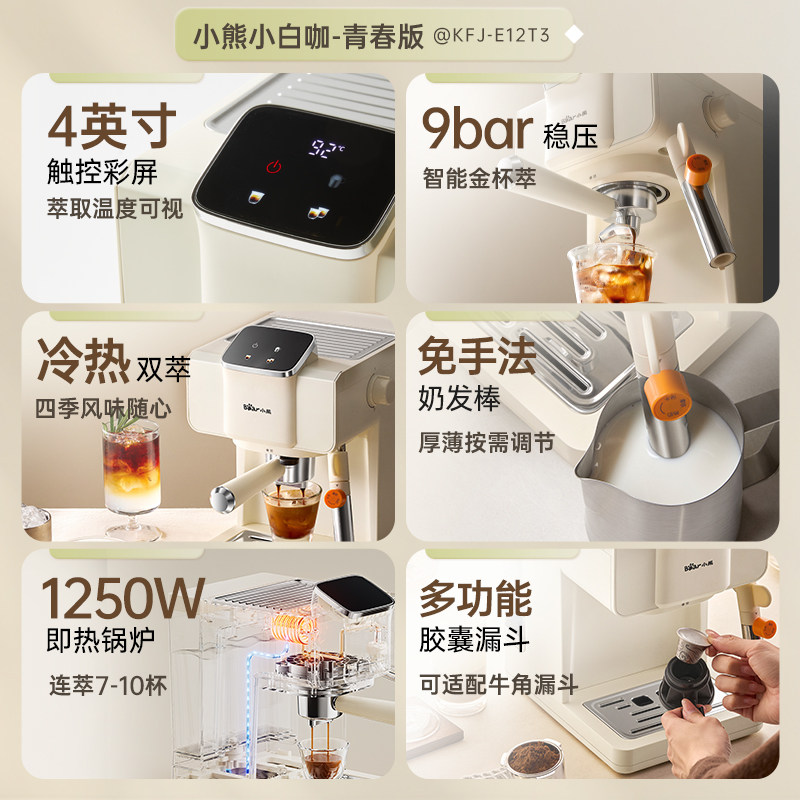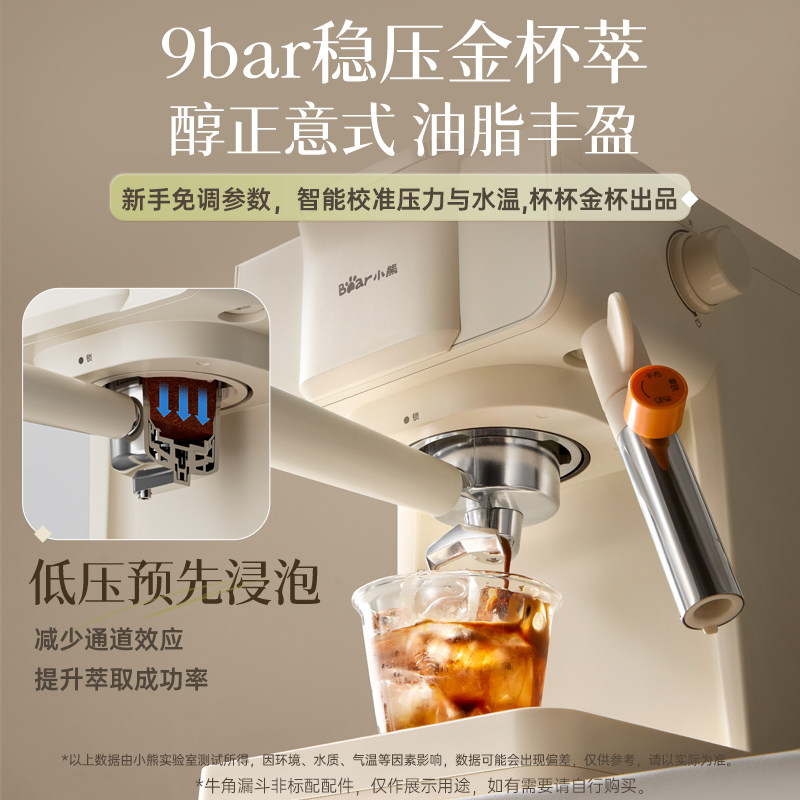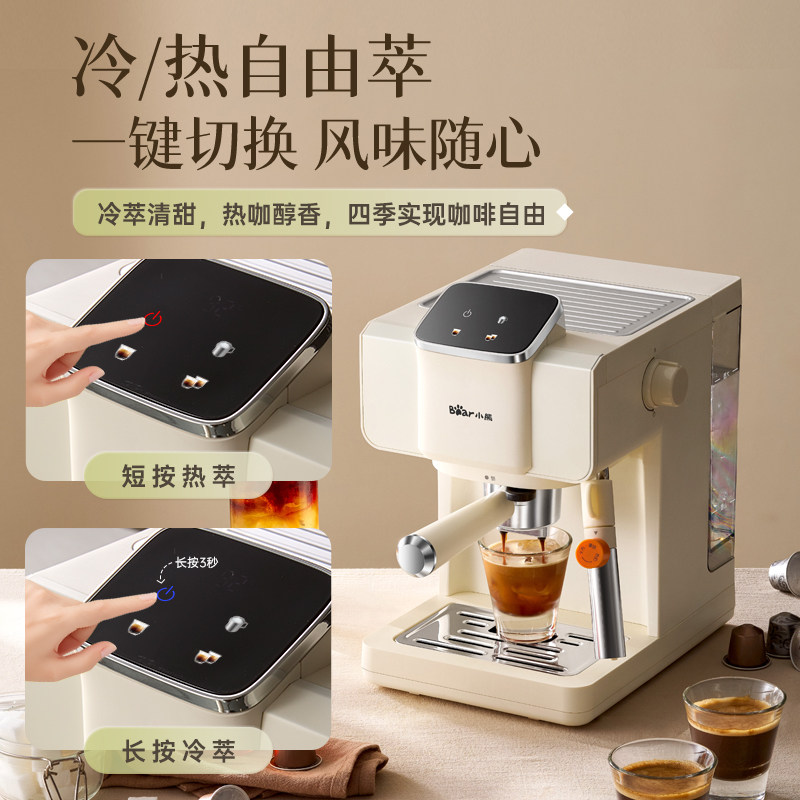 天猫小熊咖啡机半自动意式冷热双萃免预热家用小型礼物胶囊咖粉小白咖
