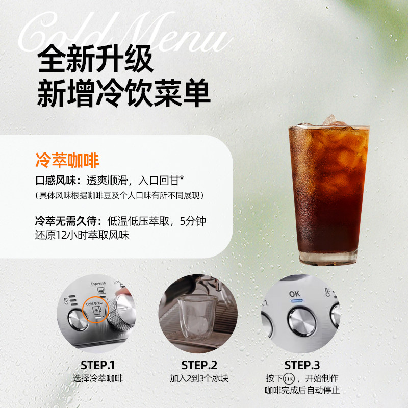 飞利浦全自动咖啡机小型现磨家用冷萃低温意式美式研磨一体奶缸款