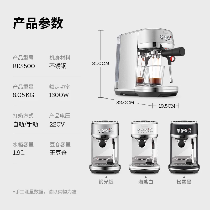 淘宝Breville铂富BES500家用小型半自动咖啡机 自动奶泡