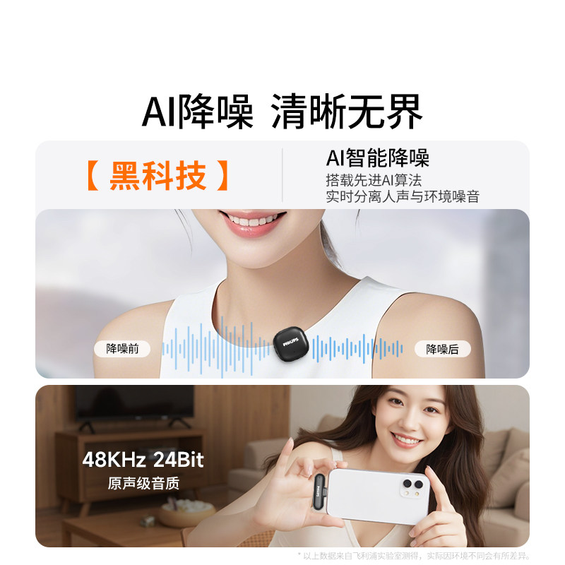 天猫飞利浦3549无线麦克风领夹式收音麦器主播声卡直播手机拍视频设备