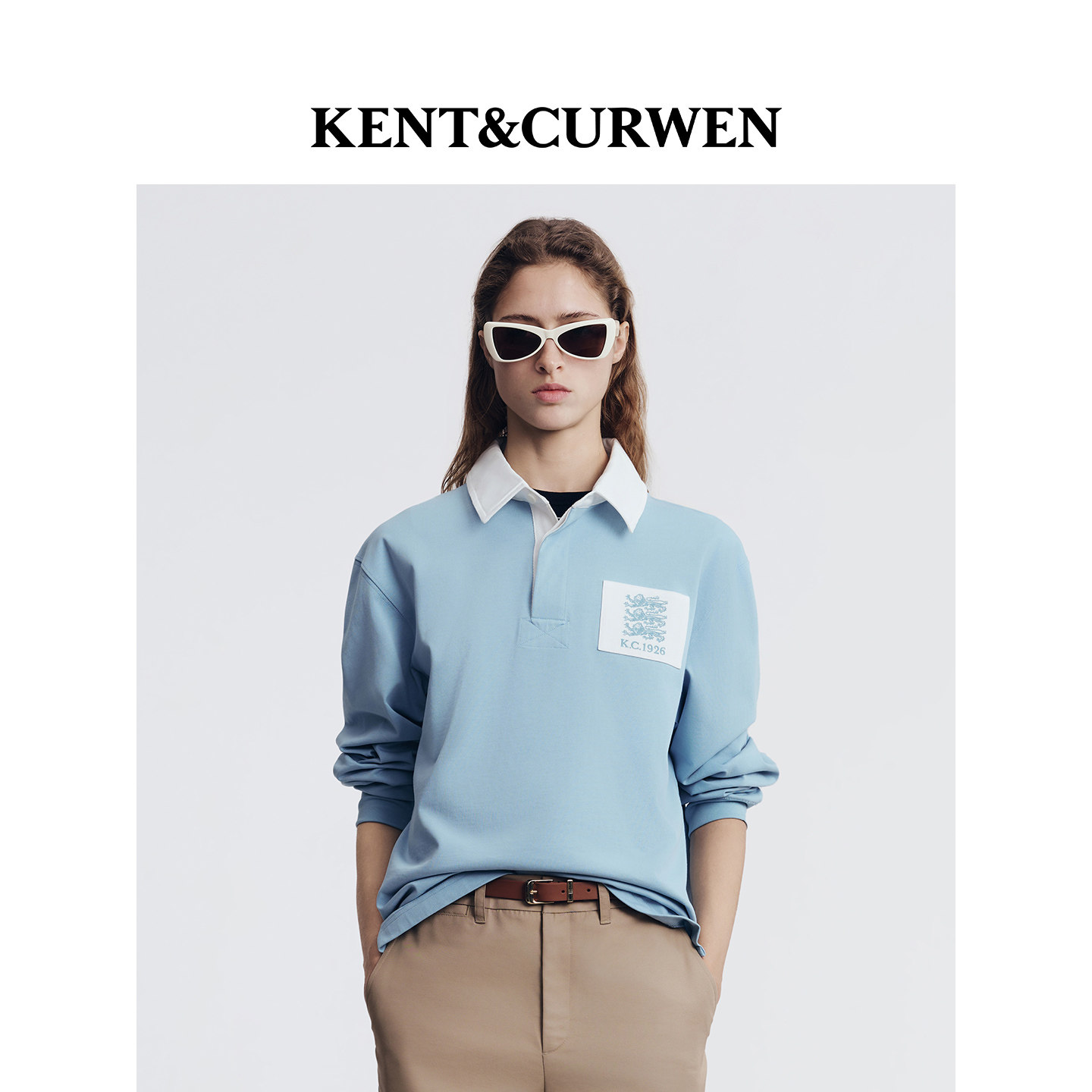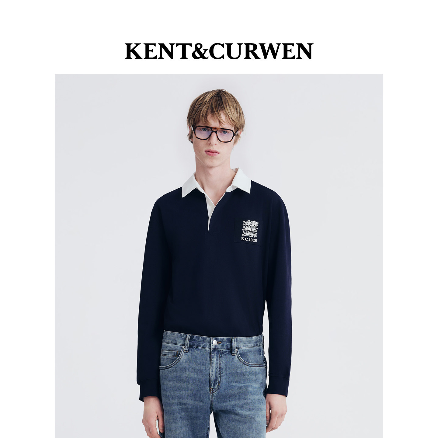 天猫KENT&CURWEN/肯迪文秋冬系列三狮刺绣撞色运动纯棉男士长袖POLO衫