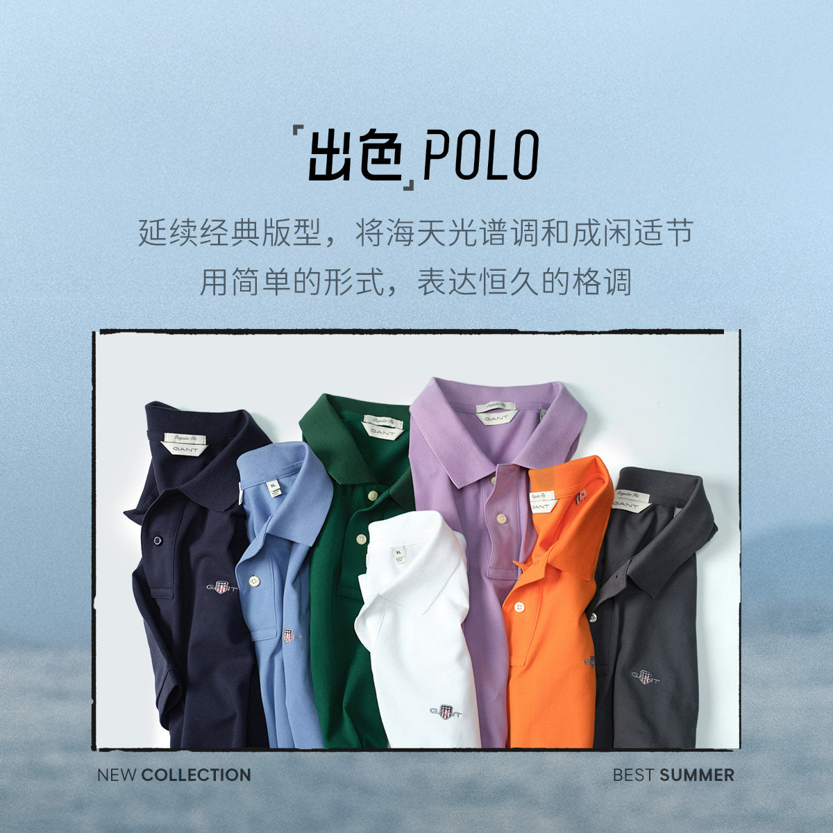 天猫【出色POLO】GANT/甘特26年春夏男女休闲翻领纯色情侣短袖POLO衫
