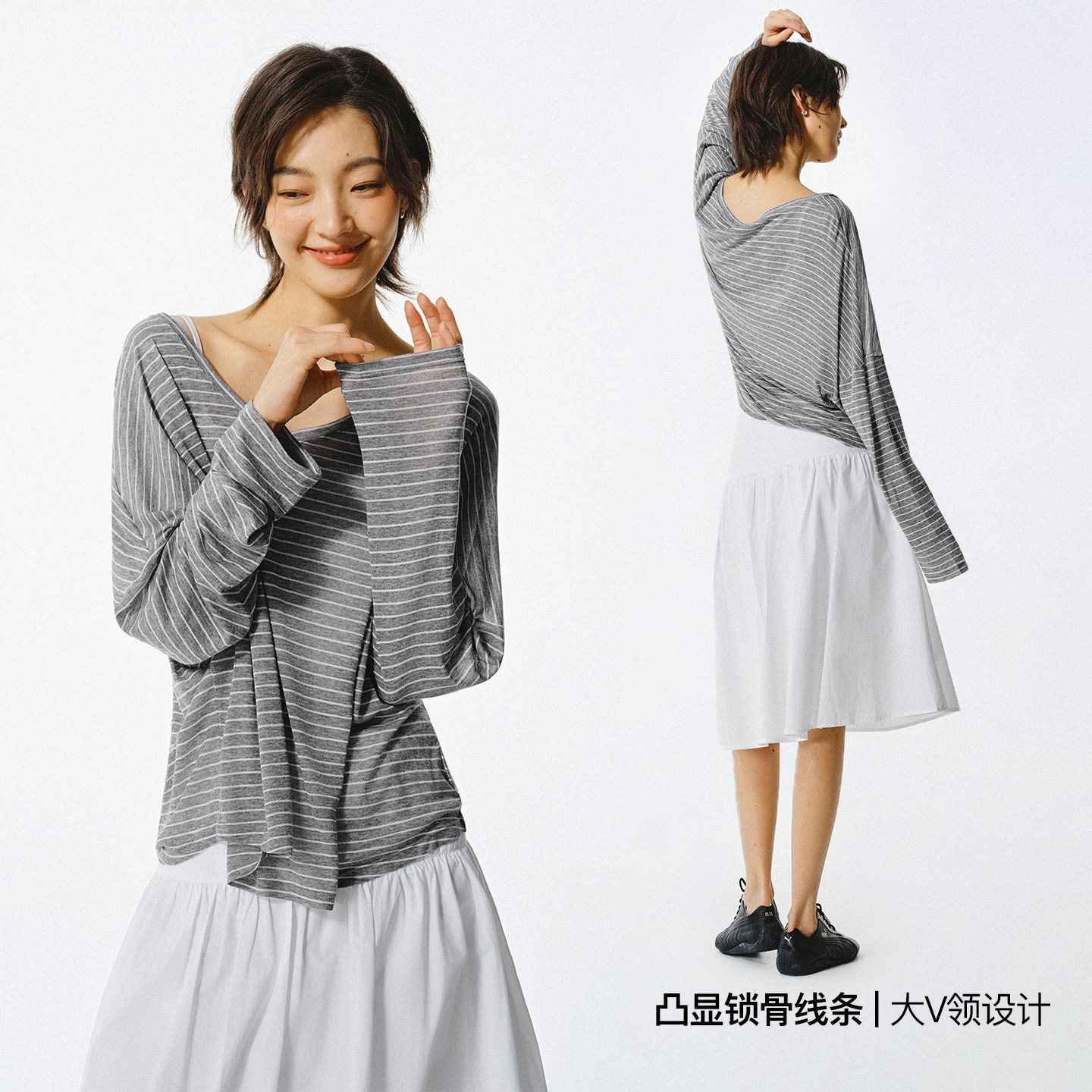 淘MRS Studios 轻薄雪花棉舒适亲肤背后垂荡设计 亨利领长袖防晒T恤