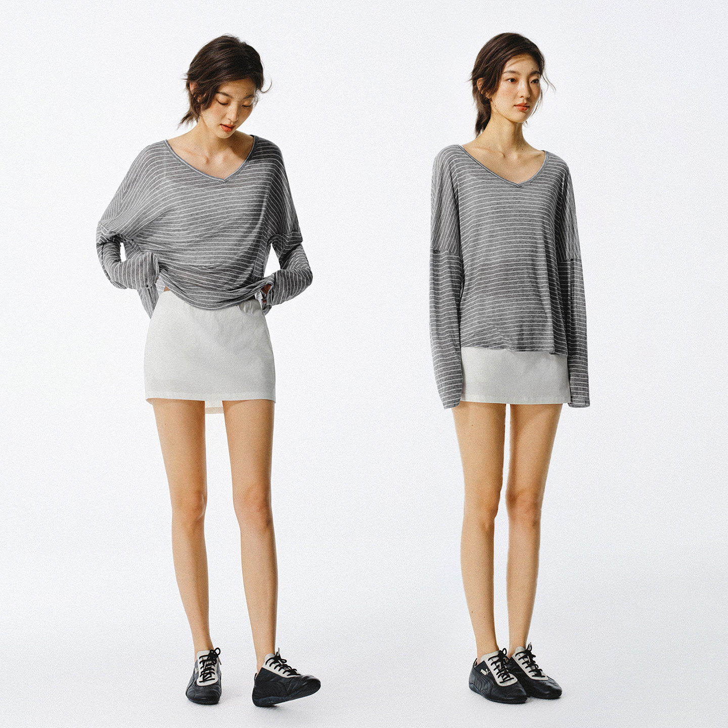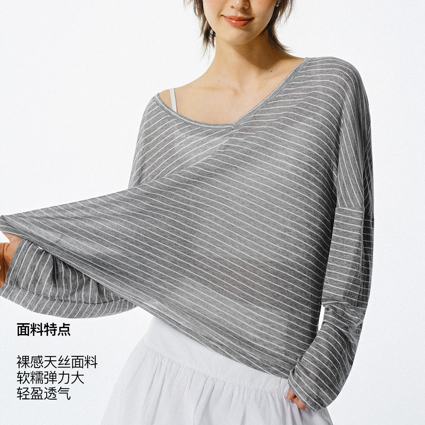 淘宝asomesome莱赛尔微透V领条纹针织罩衫女宽松垂感长袖T恤防晒上衣