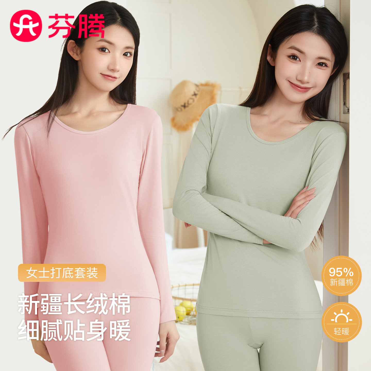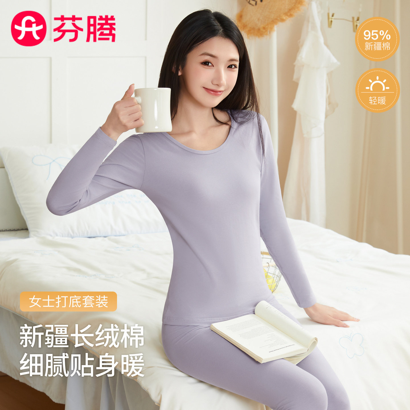 淘宝芬腾纯棉秋衣保暖衣秋衣秋裤女套装打底纯色套装薄款保暖内衣女士