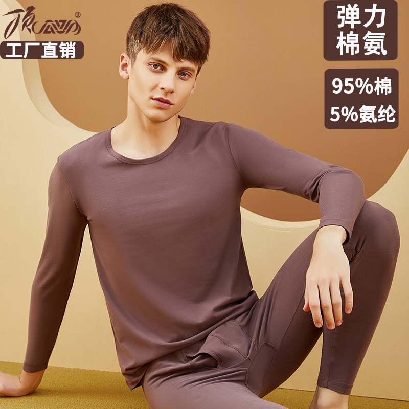 淘宝顶呱呱秋衣秋裤男士套装薄款纯棉弹力修身保暖内衣圆领打底棉毛衫