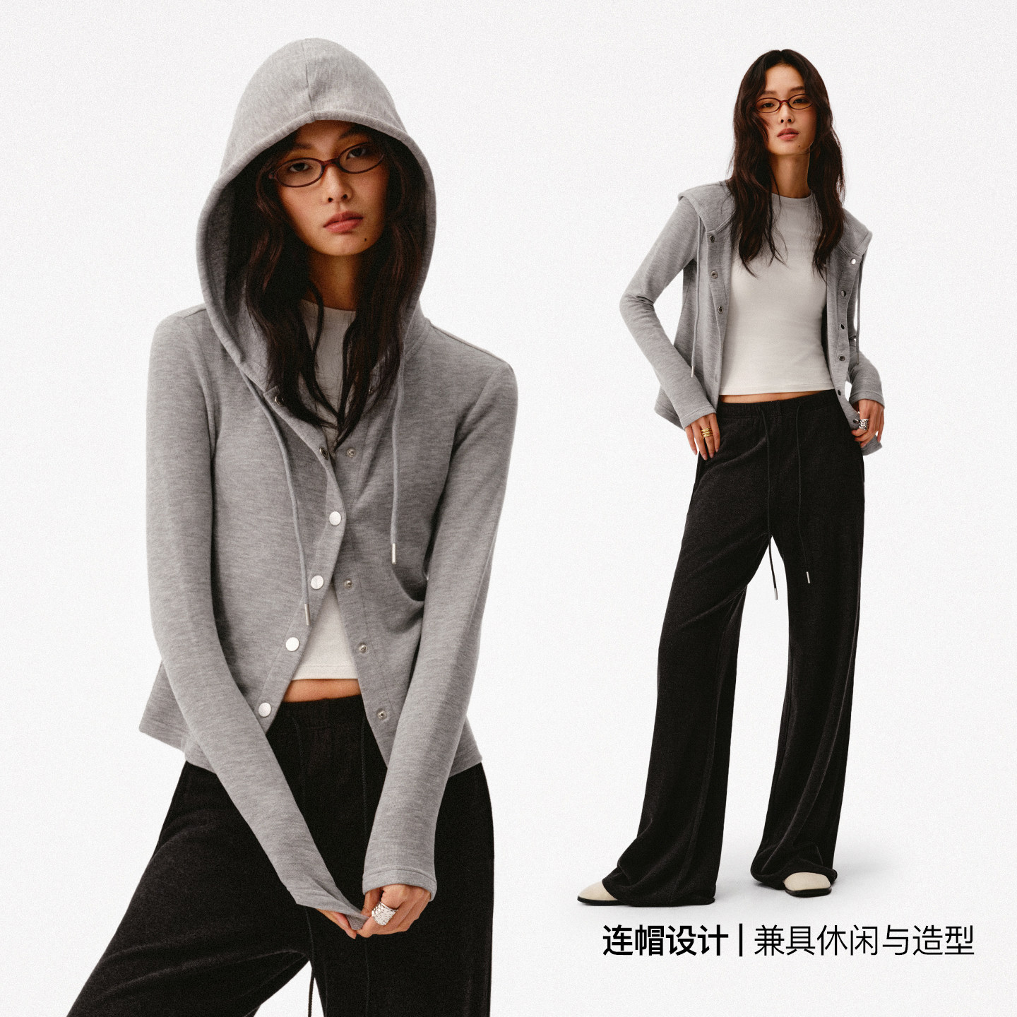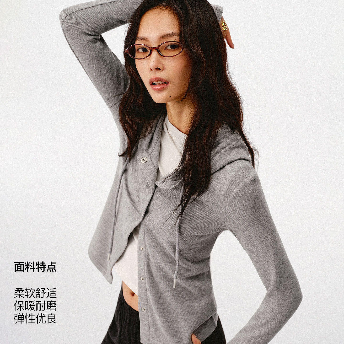 淘宝asomesome美式连帽修身纽扣开衫长袖女春新款针织薄外套内搭上衣