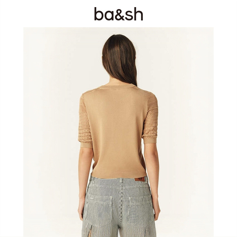 天猫【胡静同款】bash春季简约镂空软糯套头上衣女短袖针织衫1E25SHIR