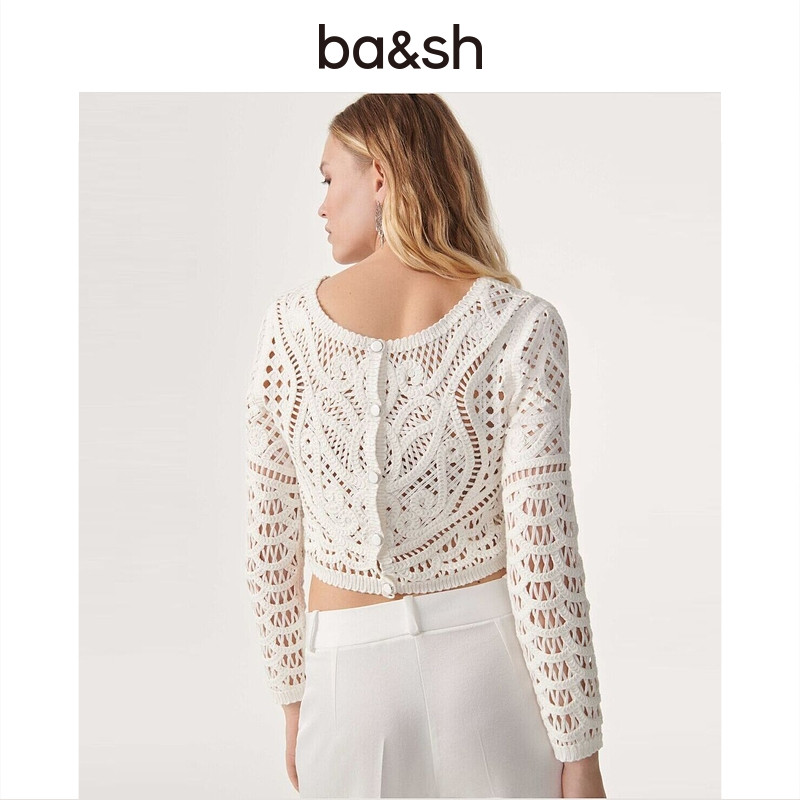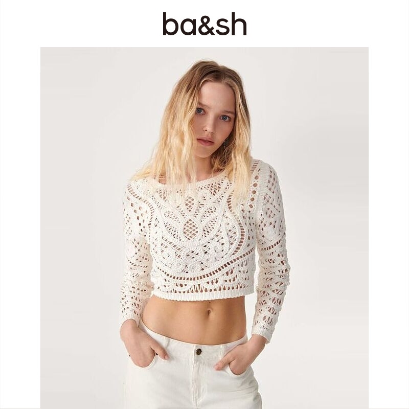 天猫【2件8折】bash春季法式气质镂空钩花长袖针织衫女上衣1E24MARC