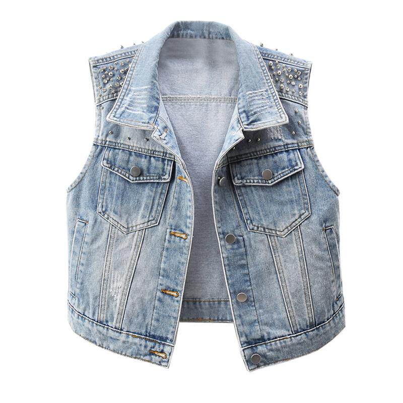 2026春季新款时尚钉珠铆钉牛仔马甲,专为追求个性与潮流的女性打造。采用优质水洗牛仔面料,挺括有型,短款设计拉长身形比例,凸显腰线。衣身巧妙融入精致钉珠与金属铆钉元素,闪耀吸睛,彰显不羁态度。前襟无扣开合,可自由叠穿T恤、衬衫或连衣裙,轻松打造街头、休闲、混搭等多种风格。多口袋实用设计兼顾美观与功能性。无论是春日出街、音乐节还是日常穿搭,这款百搭洋气背心都能让你轻松成为焦点,尽显时髦态度与独特魅力。