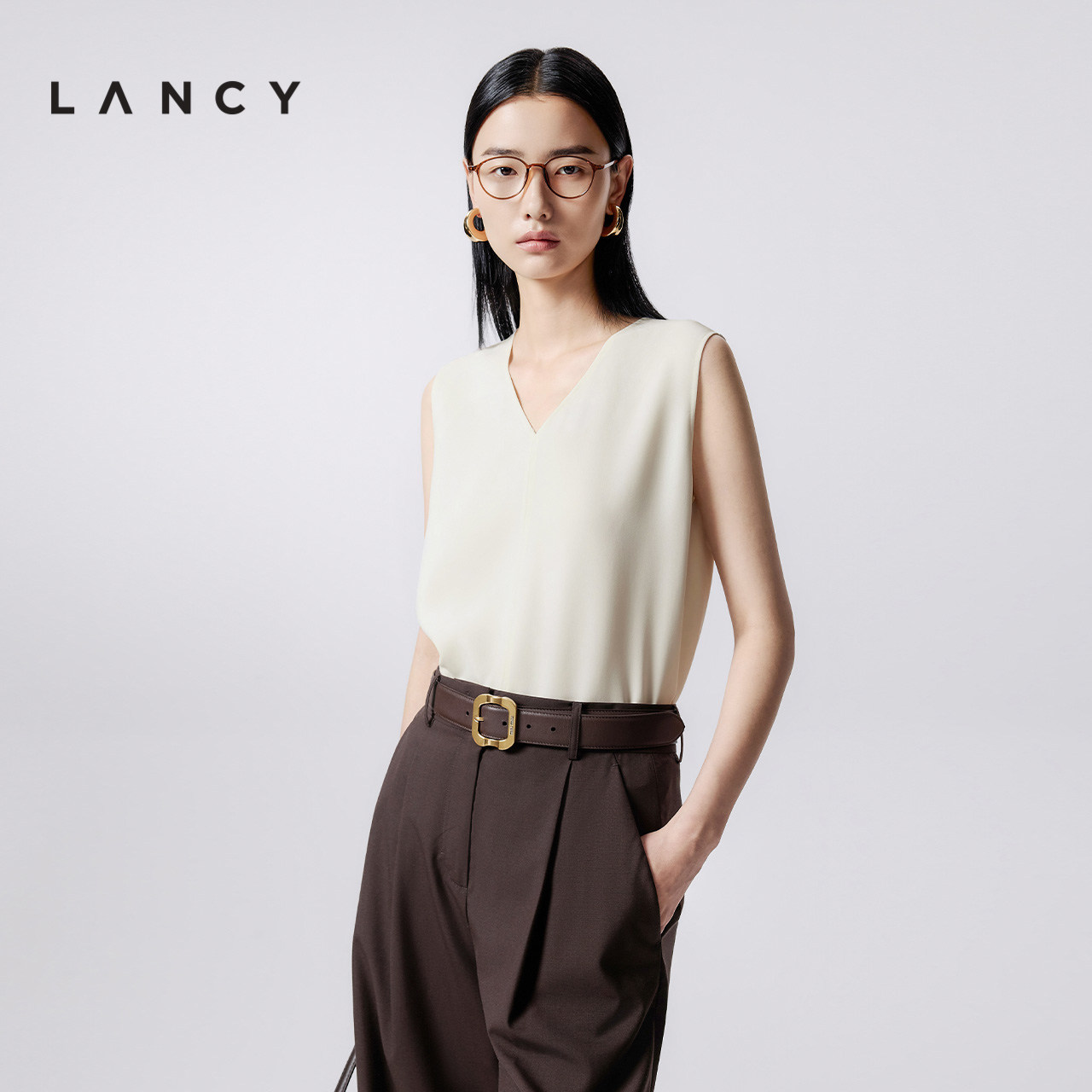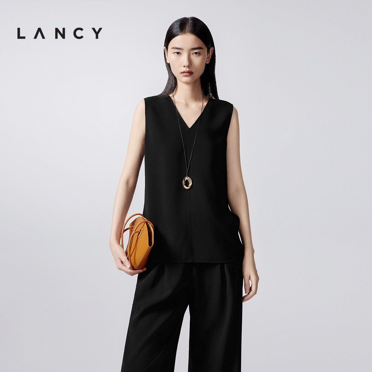 天猫【三醋酸】LANCY/朗姿2025夏新款气质V领无袖马甲女简约高级上衣