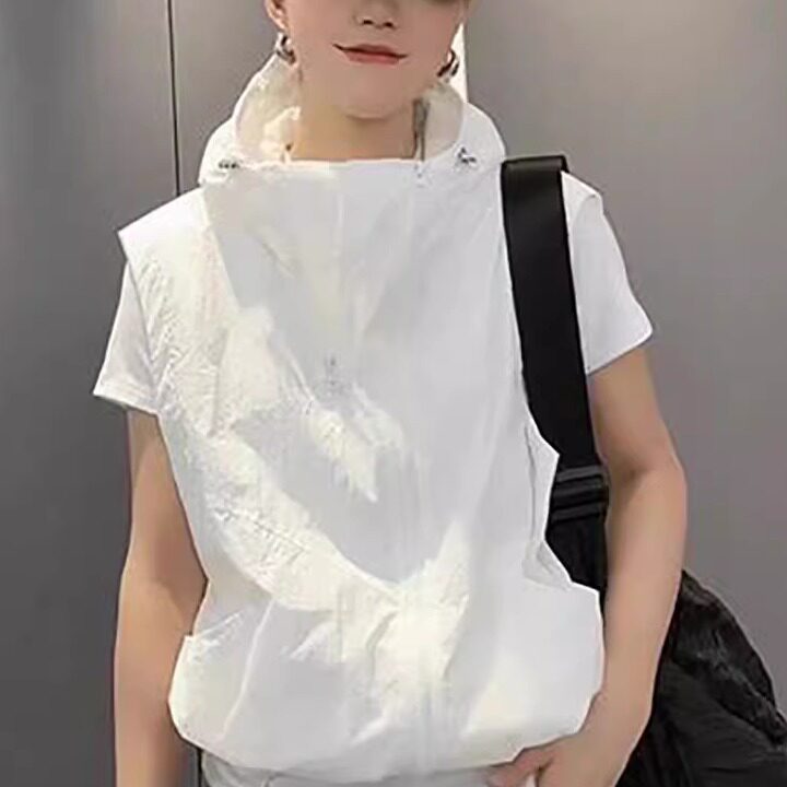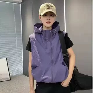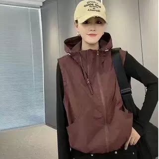 淘宝[双层带网】欧货连帽轻薄马甲女2025年春夏季新款显瘦马甲