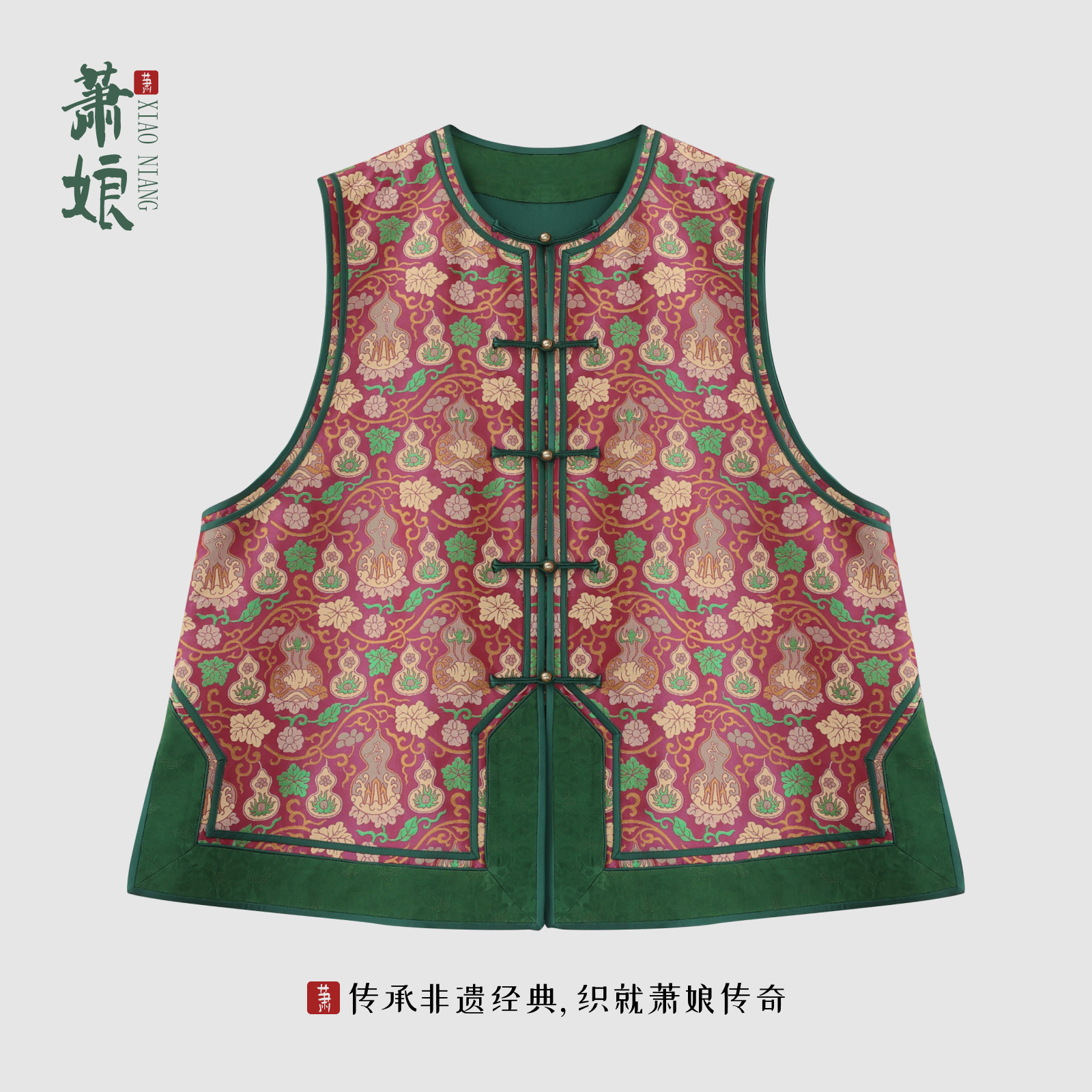 天猫萧娘【昭熹】蜀锦新中式马甲桑蚕丝圆领百搭女士国风马夹春夏2907