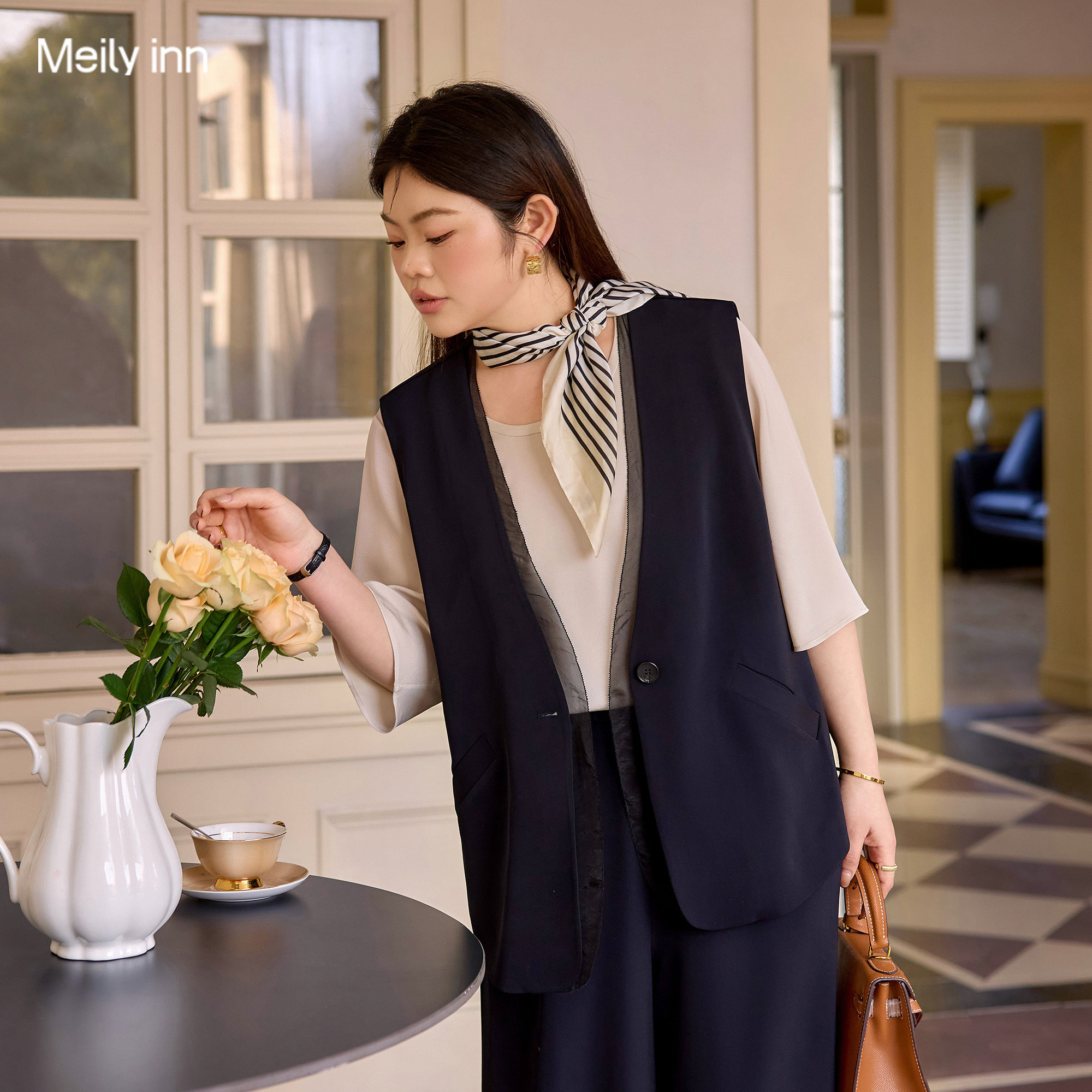 美丽客栈2026春季新款高端大码女装马甲,专为追求气质与舒适的胖MM设计。采用优质垂感面料,剪裁立体显瘦,巧妙修饰身形,展现优雅通勤风范。无袖叠穿设计,轻松搭配衬衫、T恤或针织衫,打造层次丰富的春日穿搭。精致走线与简约配色,兼顾时尚与实穿性,无论是职场通勤还是日常出行,都能穿出自信与从容。美丽客栈,用匠心剪裁诠释大码女性的独特魅力,让每一位女性都能在春天绽放属于自己的光彩。