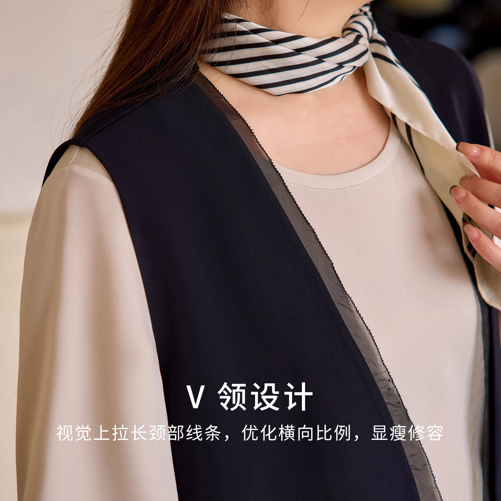 天朗姿V领修身高智感条纹马甲商务干练通勤风上衣女2026年春季新款