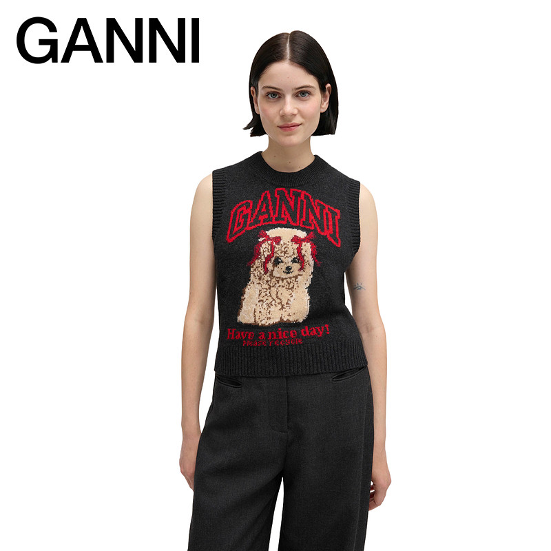 天猫【限时优惠】GANNI女装 贵宾犬马甲背心无袖针织毛衣 A1070044052