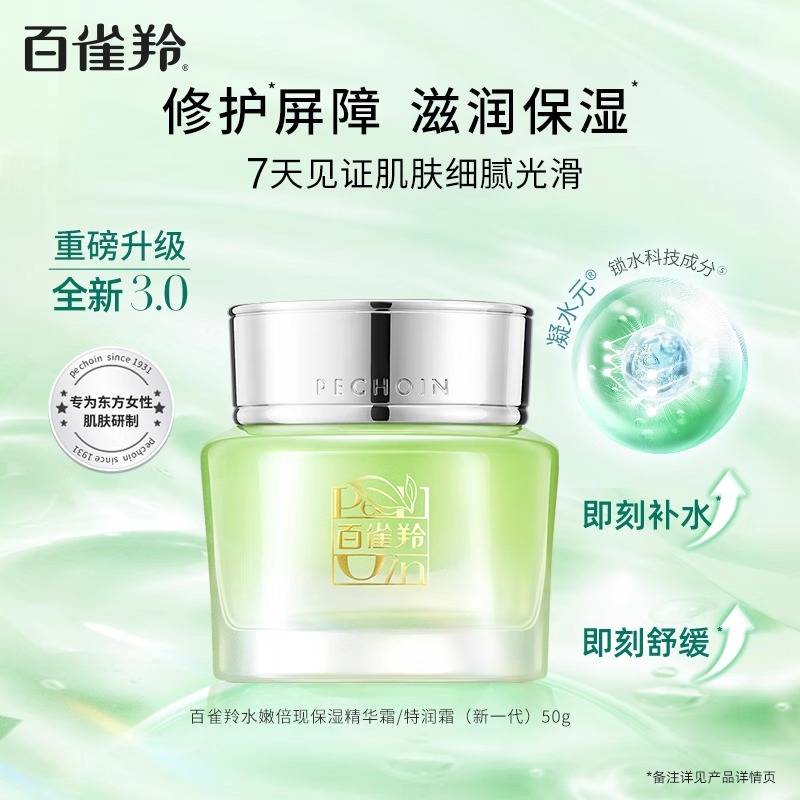 淘宝百雀羚水嫩倍现保湿精华霜清爽面霜补水滋润保湿霜男女护肤品正品