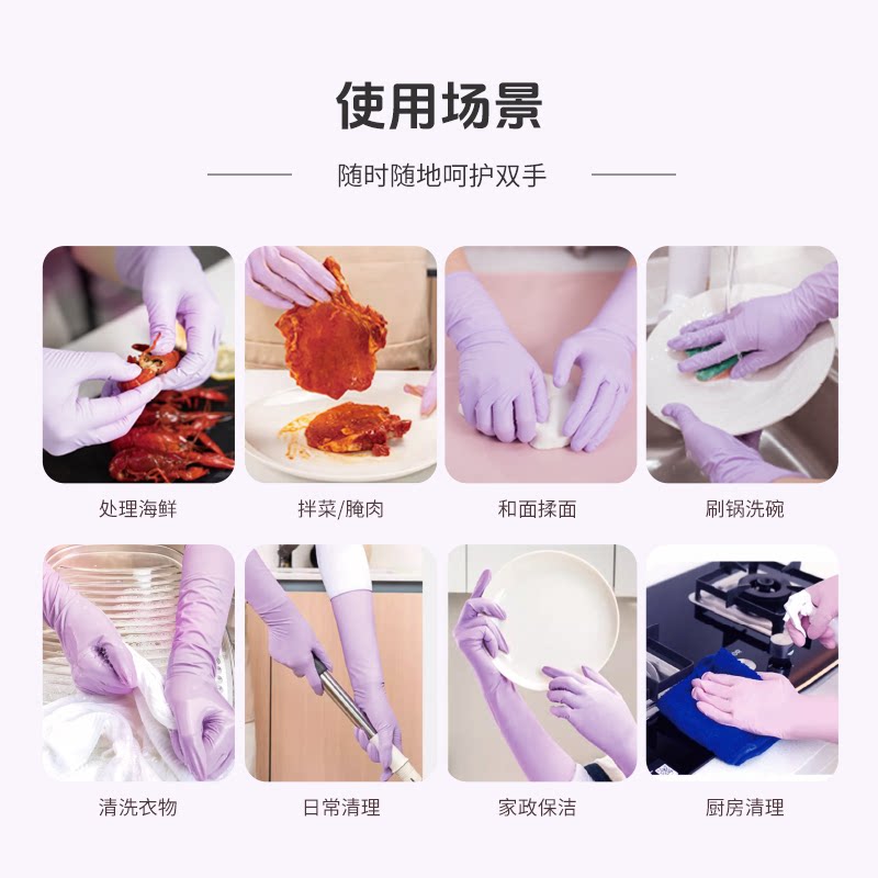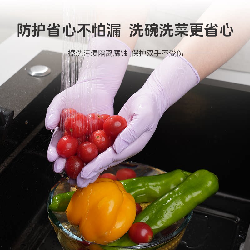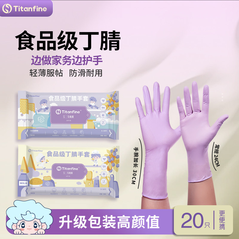 天猫Titanfine/添赞食品级丁腈手套乌梅紫家务洗碗厨房清洁耐磨加厚