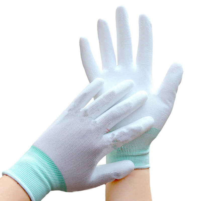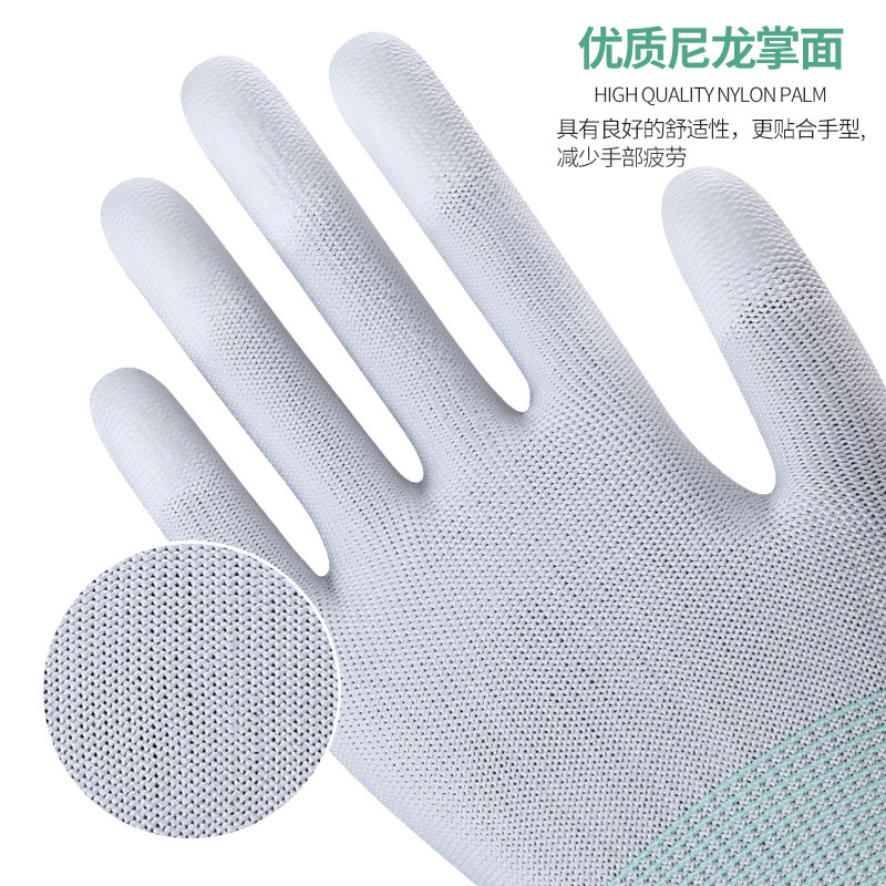 240双尼龙PU防静电涂指涂掌手套劳保工作耐磨防滑带胶防尘手套