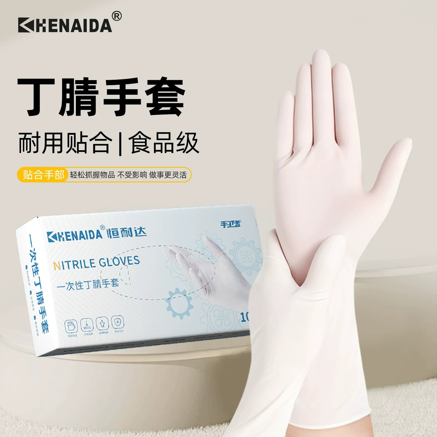 天英科一次性手套白色食品级专用丁腈家务耐用橡胶清洁厨房洗碗手套
