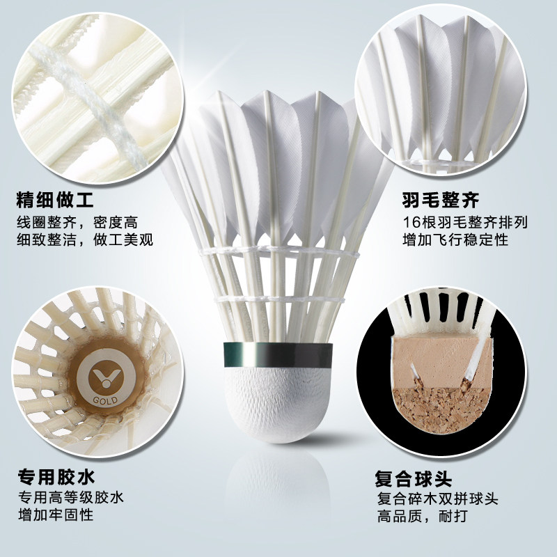 天川崎羽毛球鹅毛黑毛球12只装耐打飞行稳定室内室外专业比赛训练球