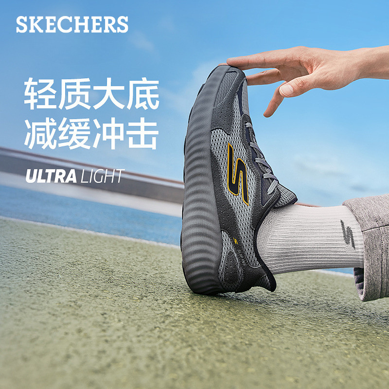 斯凯奇舒适百搭春季流行时尚男跑步鞋厚底增高休闲运动鞋软底鞋