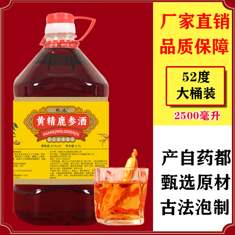 黄精人参鹿鞭酒蛹虫草三鞭养生酒配制酒52度5斤桶装高度白酒浸泡