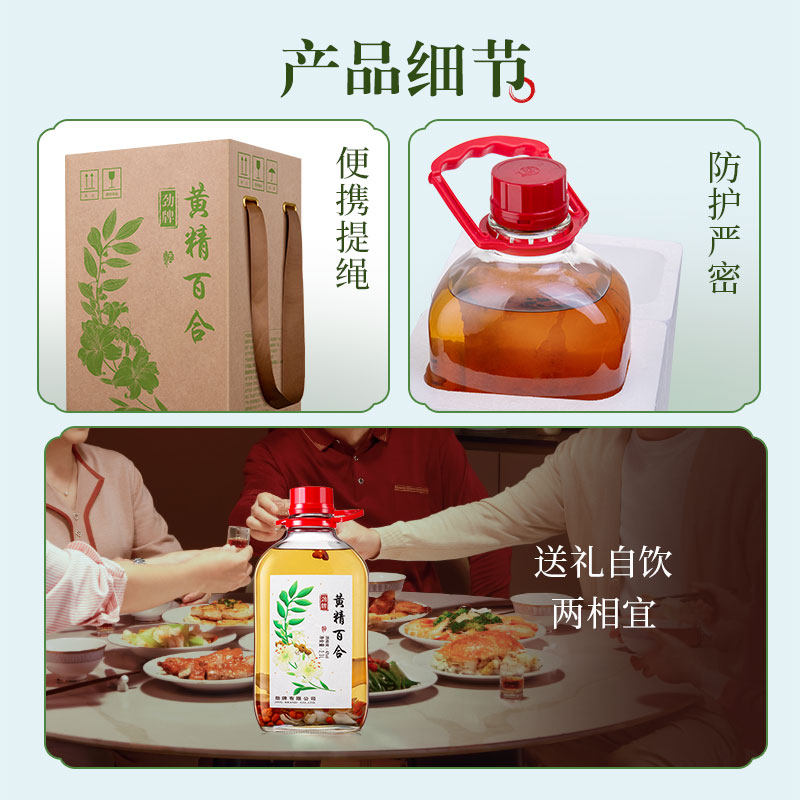 天猫劲牌40度黄精百合酒2.3L瓶装药材浸泡酒水礼盒自饮节日送礼养生酒