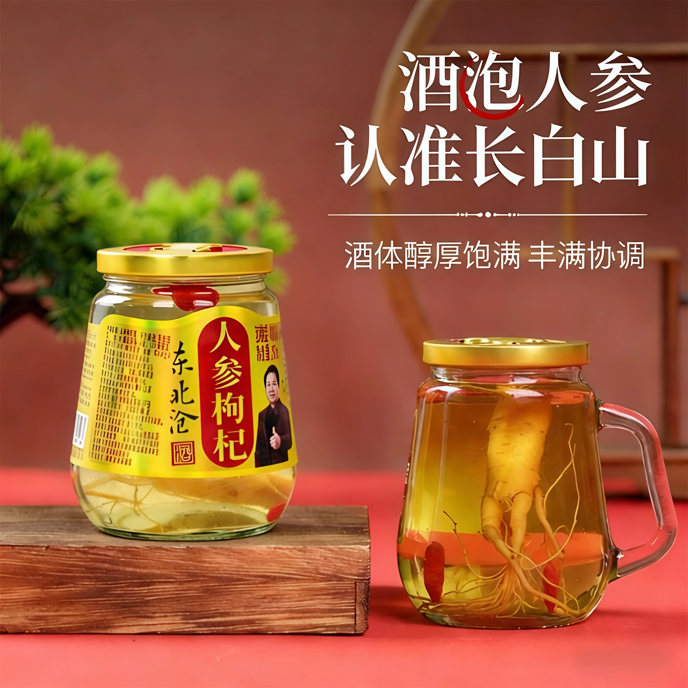 长白山老参王酒52度高粱酒超大人参枸杞养生酒1000ml单瓶东北特产