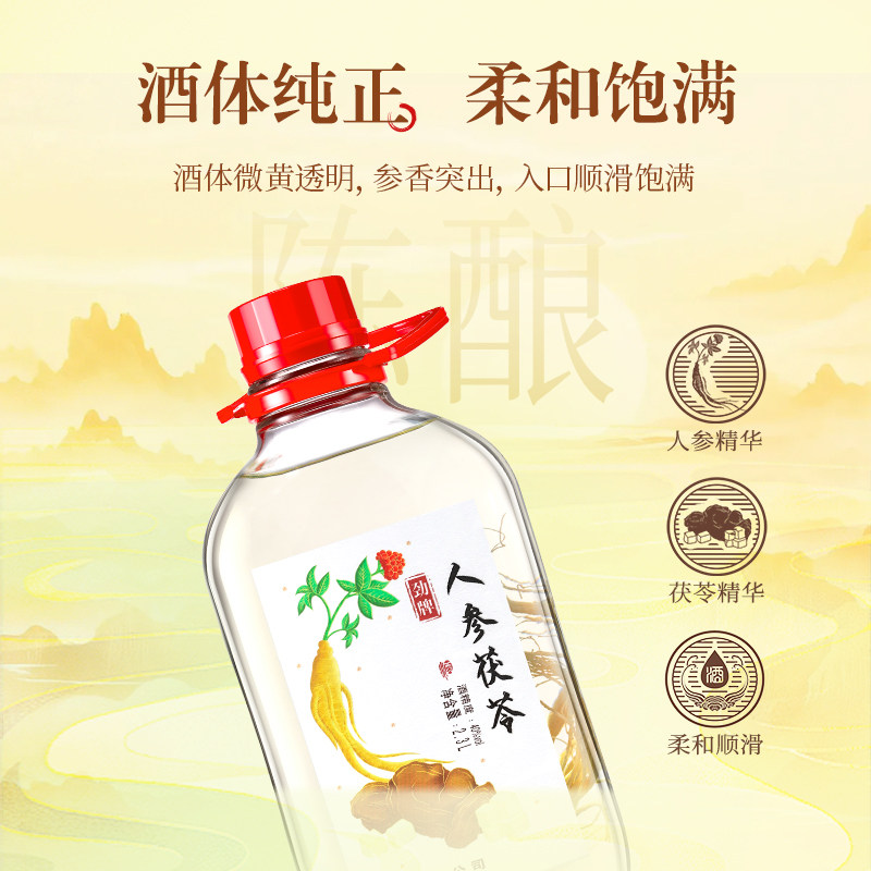 天猫劲牌40度人参茯苓酒2.3L瓶装药材浸泡酒水自饮节日送礼礼盒养生酒