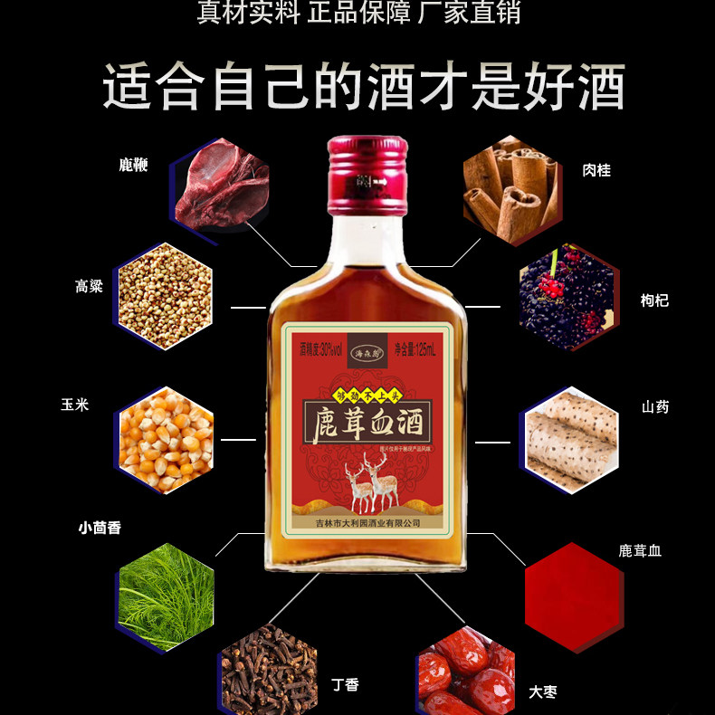 天猫海森岛鹿茸血酒30度整箱125mlX8小瓶装滋补养生配置非保健酒白酒