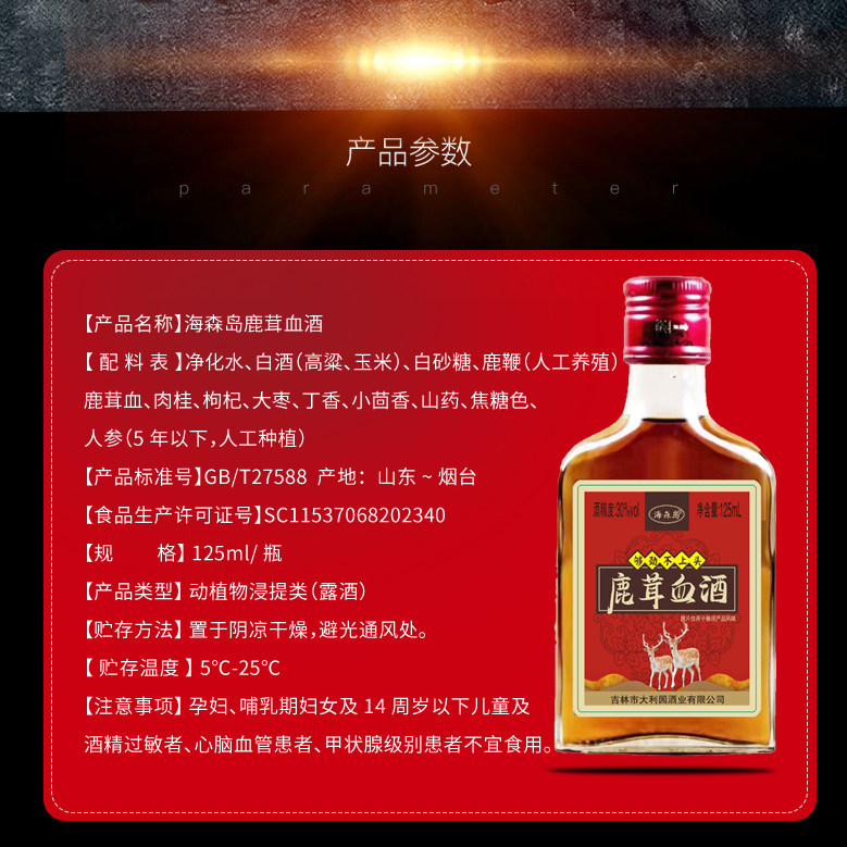 海森岛鹿茸血酒30度整箱125mlX8小瓶装滋补养生配置非保健酒白酒