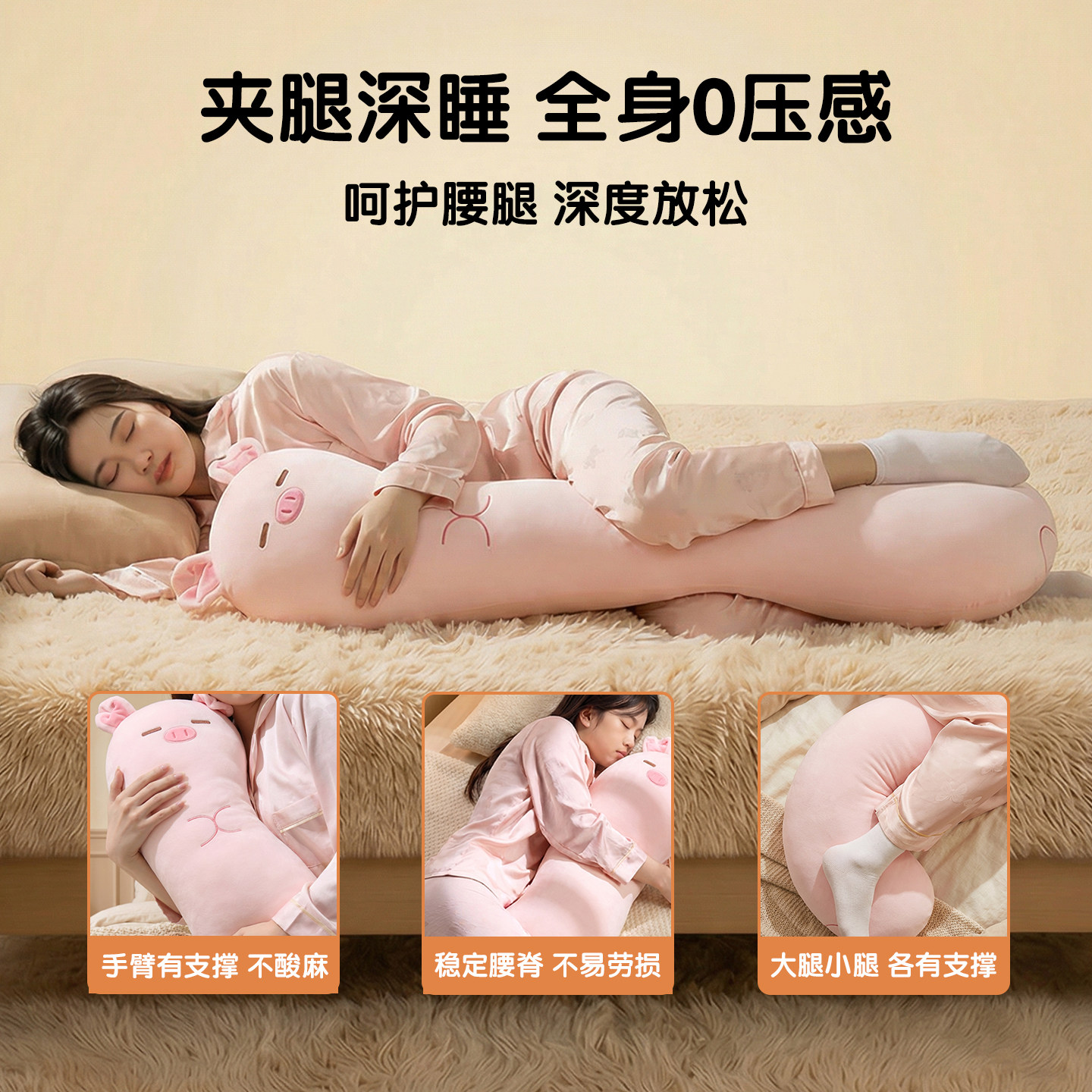 MINISO名创优品扭扭猪长条抱枕,萌趣可爱,专为舒适睡眠设计。采用柔软亲肤面料,内里填充高弹PP棉,触感细腻,回弹性佳,久压不变形。独特长条造型,完美贴合身体曲线,适合侧睡夹腿、搂抱倚靠,有效缓解腰背压力,提升睡眠质量。外套可拆卸设计,方便机洗,保持洁净卫生。扭扭猪俏皮造型,萌动少女心,是送给闺蜜、女友或自用的高颜值实用礼物。无论是居家、宿舍还是办公室小憩,都是贴心陪伴。生日、节日送这款抱枕,温暖又走心,实用与颜值兼具,让每一天都充满治愈感。
