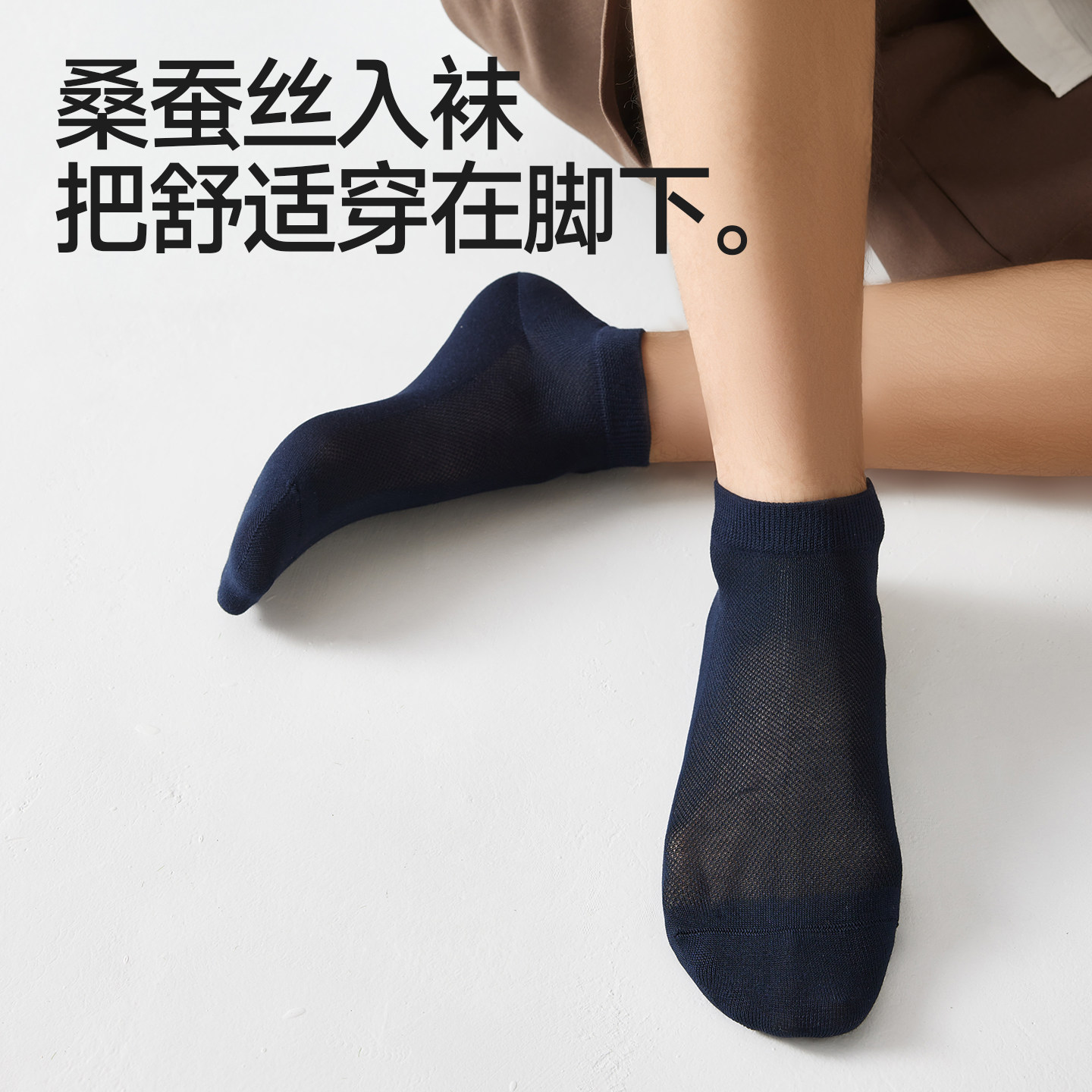 七匹狼桑蚕丝袜子男款超薄防臭莫代尔冰丝袜夏季中筒商务网眼男袜