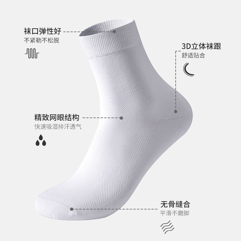 天红豆男士袜子网眼抑菌精梳棉中筒袜商务抗菌男袜棉质休闲袜五双装
