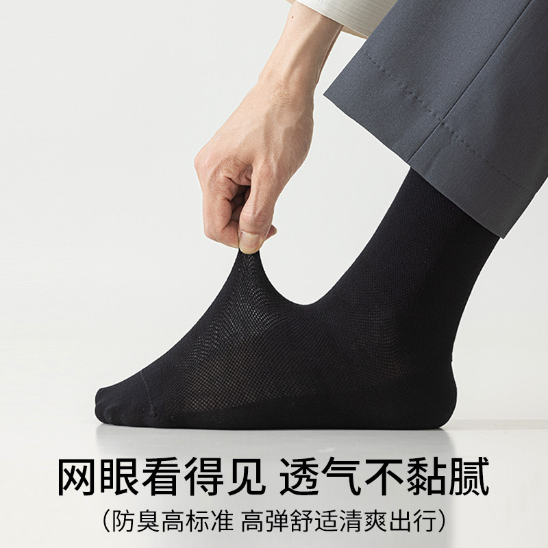 淘恒源祥男士丝袜夏季薄款防臭黑白色中筒袜超薄透气商务冰丝男袜子