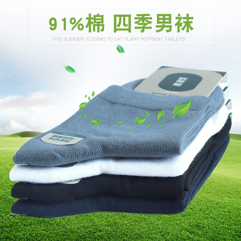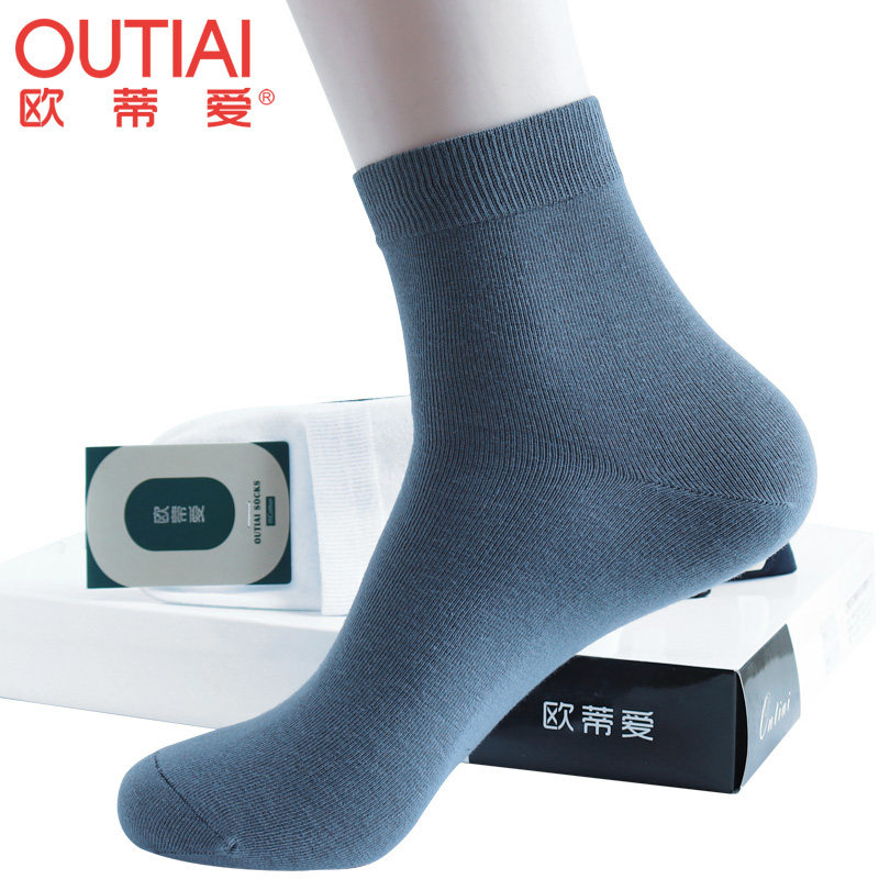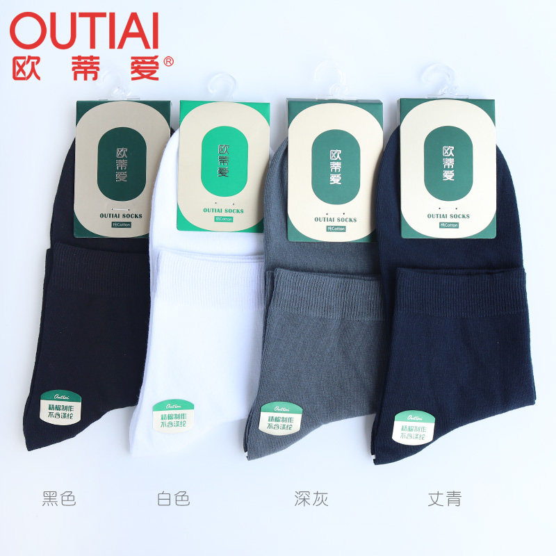 淘宝欧蒂爱男袜四季薄款商务中筒袜91%纯棉吸汗防臭短袜无骨缝合运动