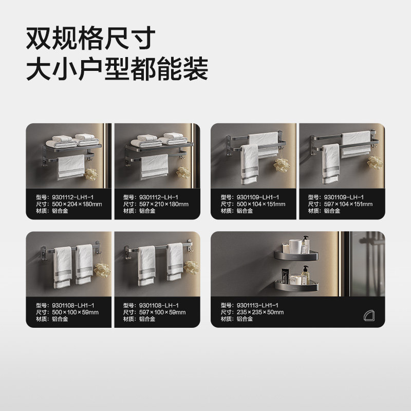 淘宝九牧卫浴浴室太空铝枪灰挂件套装浴巾架毛巾架