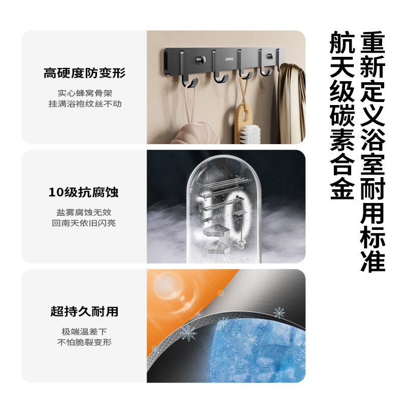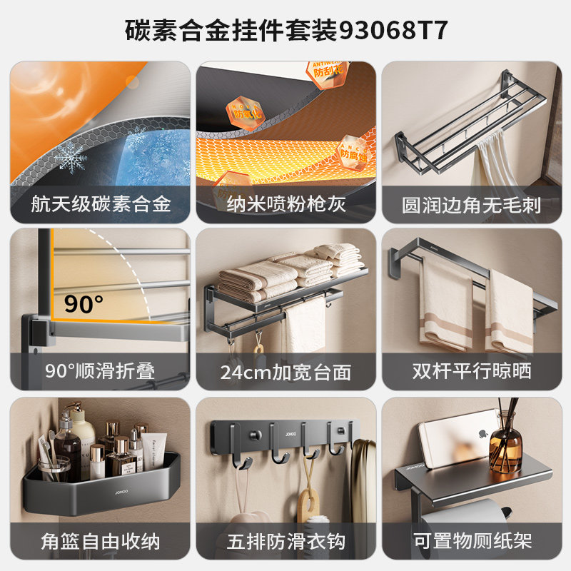 淘宝九牧卫浴卫生间多功能壁挂式折叠活动型碳素合金挂件七套装