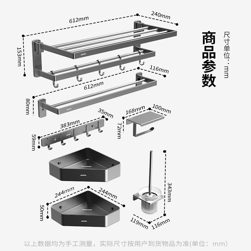 【新品上市】九牧碳素合金毛巾架,匠心打造浴室收纳新体验。采用高强度碳素合金材质,兼具轻盈与耐用,抗腐蚀、防生锈,持久如新。简约流线设计,适配现代、北欧等多种装修风格,提升卫浴空间质感。多层置物结构,轻松收纳浴巾、毛巾及洗浴用品,通风透气,快速干燥,告别潮湿异味。安装便捷,稳固承重,细节彰显品质。九牧专注卫浴五金30余年,以创新科技与人性化设计,为您带来洁净、有序、舒适的浴室环境。新品首发,品质之选,焕新您的卫浴生活。