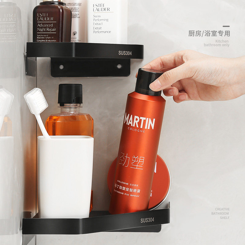 浴室置物架厨卫用品单层角架免打孔收纳架五金淋浴房挂件吸壁式