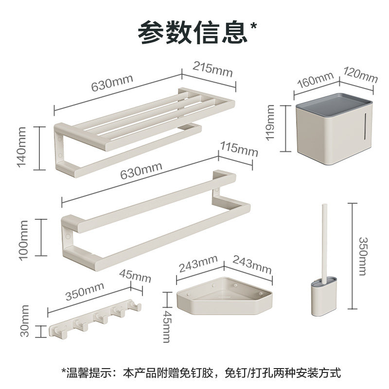 淘宝九牧卫浴浴室太空铝奶油白挂件套餐卫生间置物架