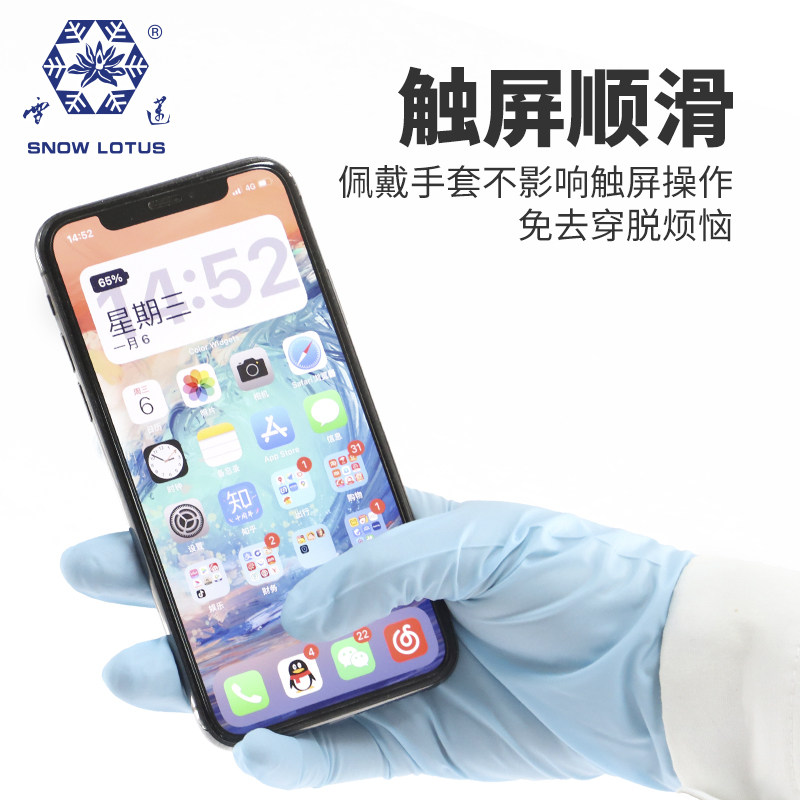 天猫雪莲丁腈乳胶一次性检查手套家用食品接触厨房外科牙科加厚橡胶