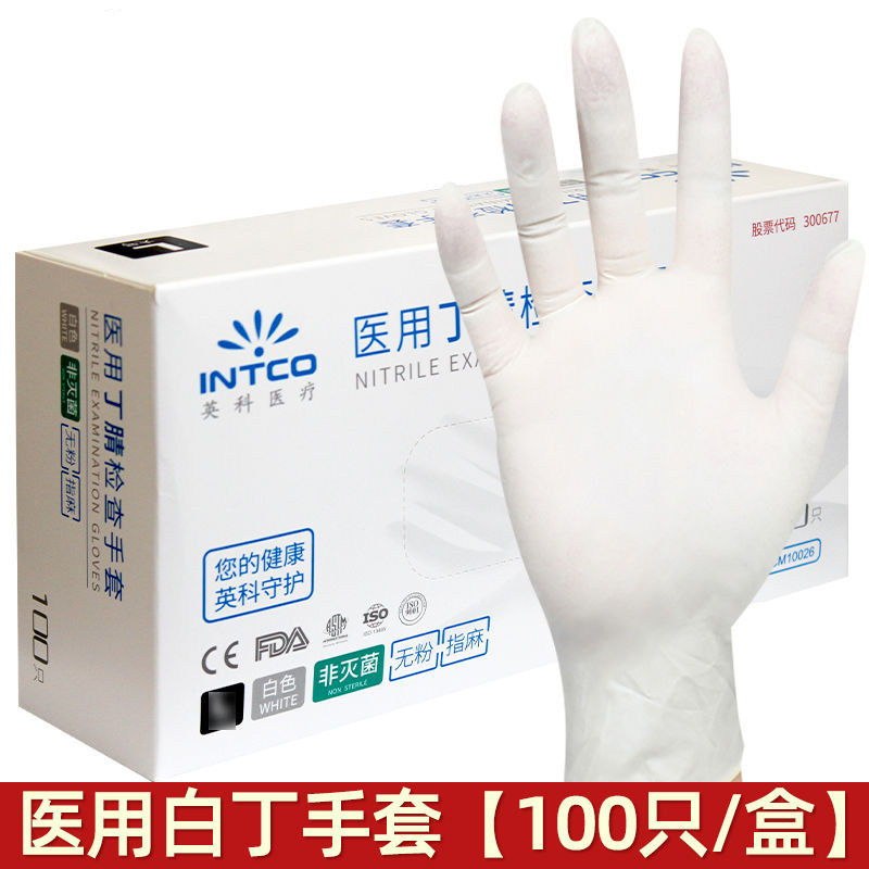 英科医用丁腈手套一次性防护加厚乳胶橡胶丁晴手套手术检查家务