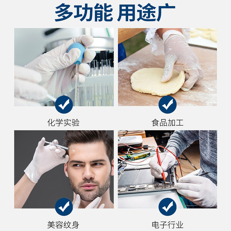 雪莲丁腈乳胶一次性检查手套家用食品接触厨房外科牙科加厚橡胶