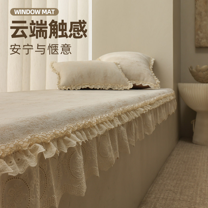 淘宝原创法式飘窗垫奶油风裙边四季款新款高档阳台垫子防滑可机洗盖布