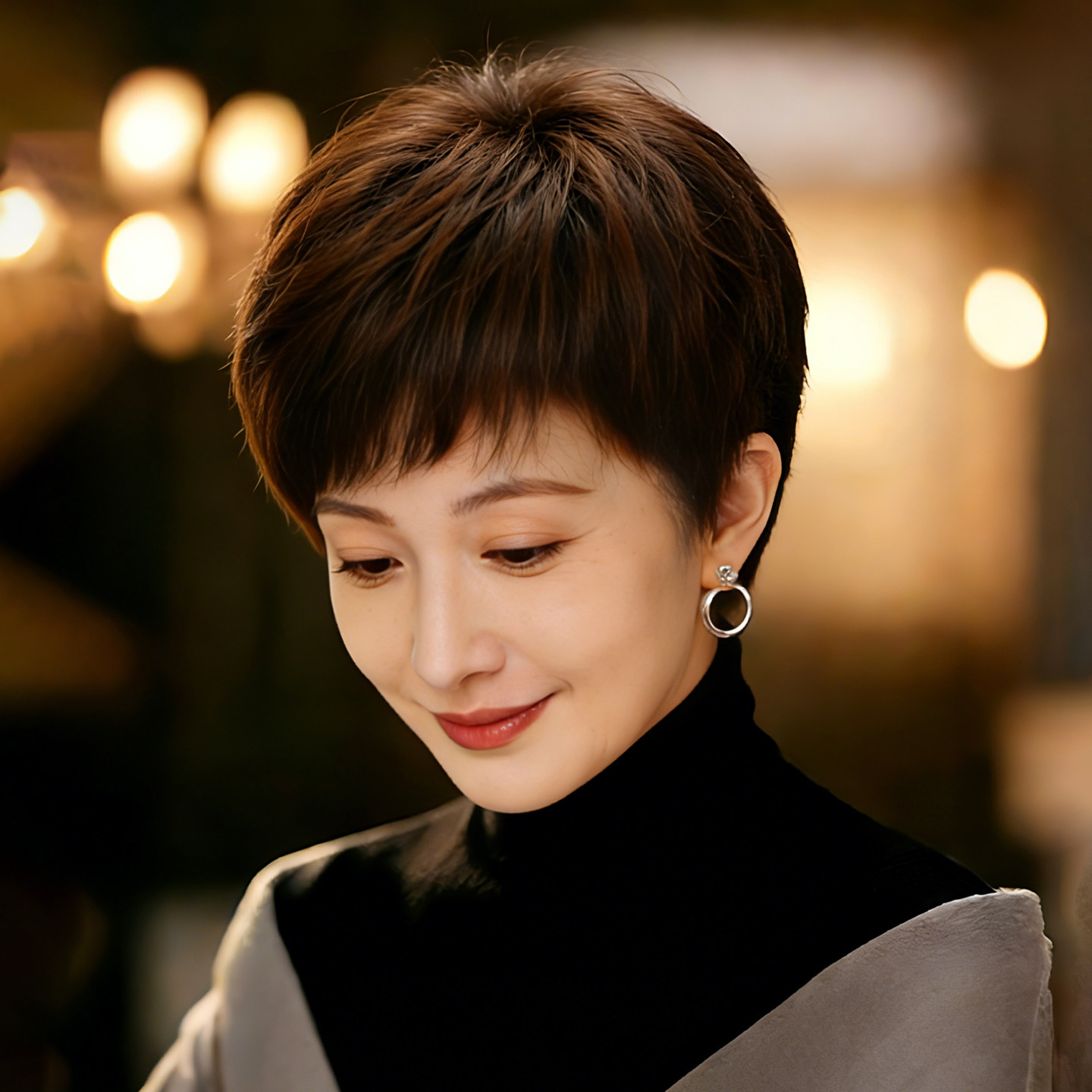天猫假发全头套女真人发丝2026新款短发卷发中老年女妈妈高端自然真发