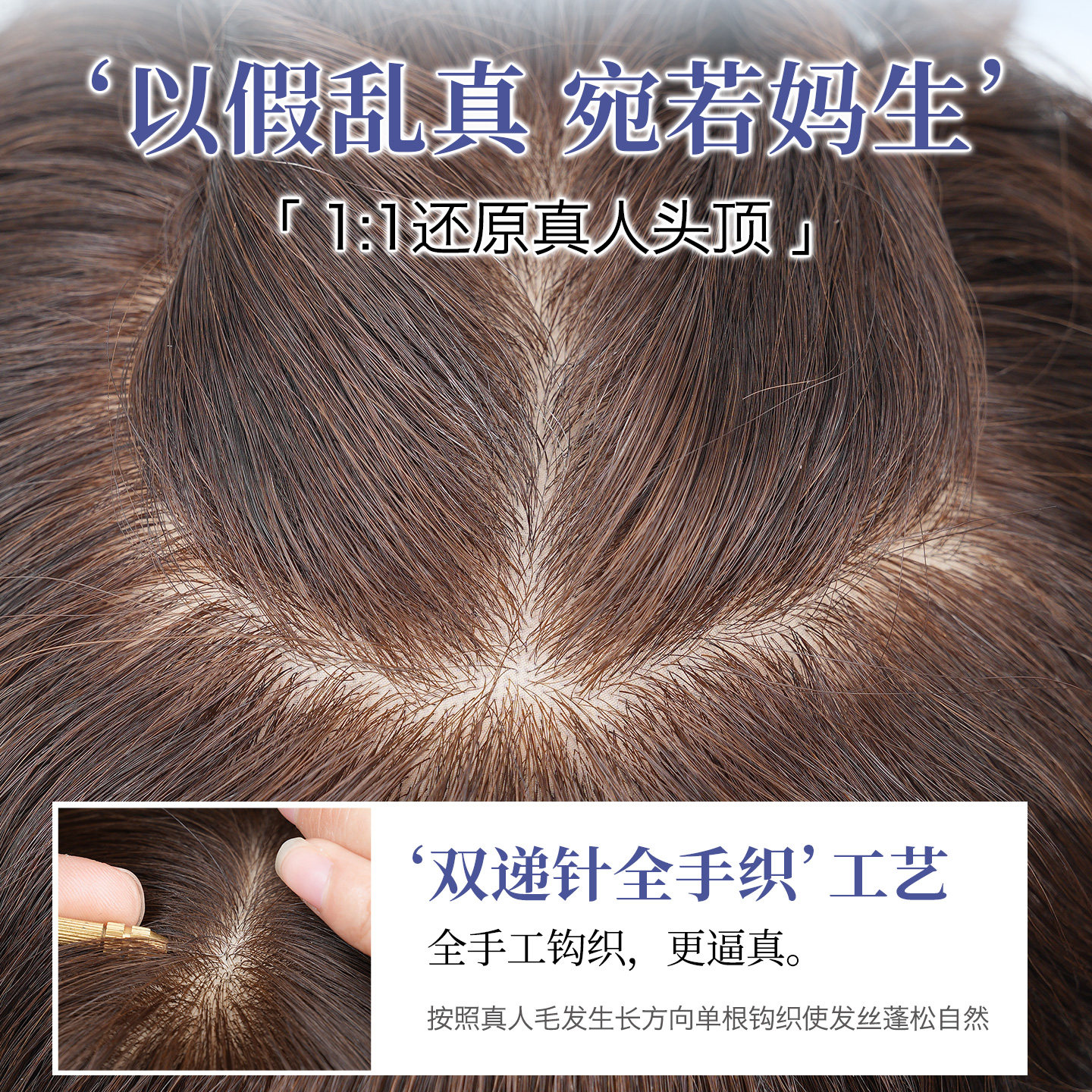 花枝翘头顶补发片女增发补发全递针中老年遮白发真发刘海假发片