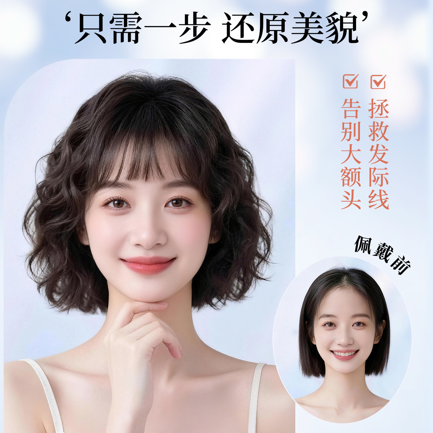 瑞贝卡假发片女真发一片式发片全真人发胎毛刘海蓬松头顶补增发量