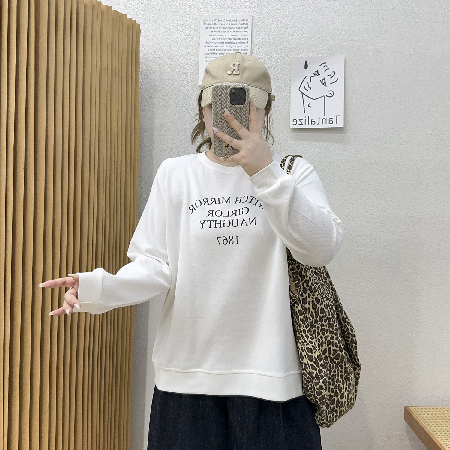 淘Makemore长袖罩衫女夏日轻薄慵懒风防晒t恤宽松圆领白色美式上衣